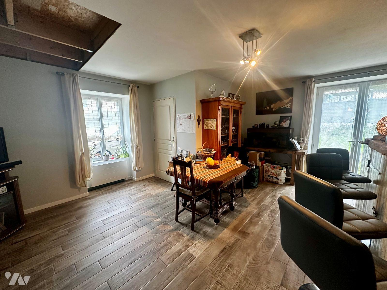 MINIAC-MORVAN : Maison d'habitation de plain-pied entièrement rénovée comprenant une entrée desservant une cuisine ouverte aménagée et équipée, une buanderie, un séjour/salle à manger de 43m² avec cheminée, une chambre et sa salle d'eau attenante.